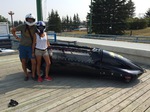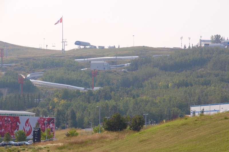für den zweiten tag in calgary haben wir etwas besonderes geplant. wir wollen mit dem bob die bobbahn der olympischen spiele von 1988 runter fahren. die bobbahn liegt direkt neben den skischanzen. man fährt in einem mit rädern bestückten 4er-bob. neben 4 gästen fährt hinten noch der „steuermann“ mit. man erreicht immerhin 80 km/h und wird ordentlich durchgeschüttelt, insbesondere in den kurven. ein sehr cooles erlebnis. die profis im winter fahren übrigens bis zu 130 km/h.