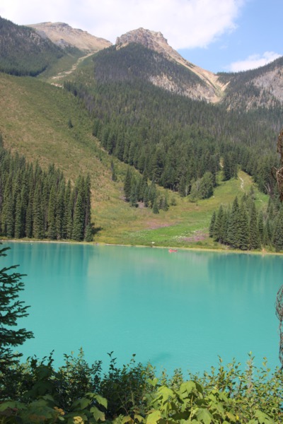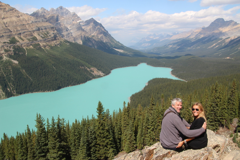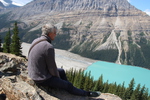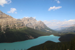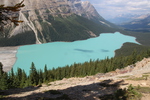 am folgenden tag sind wir wieder „alleine“ unterwegs. es geht den icefield parkway zurück richtung lake louise, wieder entlang an den außergewöhnlichen panoramen die diese straße bietet. nach 2/3 des weges geht es rechts ab zum peyto-lake. hier im banff kommt man aus dem staunen nicht raus. auch dieser see ist ein absoluter hammer. man hat vom outlook einen sagenhaften ausblick auf den gesamten see der bei strahlendem sonnenschein den eindruck erweckt als würde der see selbst grünlich-türkis leuchten. einfach nur schön. wir wandern noch ein stück oberhalb des sees entlang, müssen aber nach ca. 2 km umkehren, da der weg zu schmal und unklar ausgeschildert wird und wir unser „bear-horn“ nicht dabei haben.