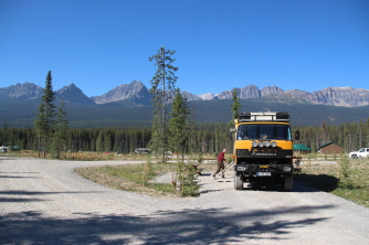 ursprünglich hatten wir nun noch vor in den glacier nationalpark zu fahren. aber nach einer recherche im internet stellen wir fest, dass er letztendlich nichts bietet was wir nicht schon ähnlich im banff, jasper oder yoho gesehen haben. also fahren wir nach süden richtung usa. unsere letzte übernachtung in kanada ist einer der urtümlichsten. wir stehen nahezu direkt an einem fluss auf einer kleinen lichtung. nur ein paar schritte und wir stehen im eiskalten wasser des flusses. weit und breit kein haus. wir essen zu abend direkt am fluss. wir sind gerade fertig mit essen als 2 ranger auftauchen und sich nach unserem befinden erkundigen. auf rückfrage erklären sie uns dass wir gerne hier übernachten dürfen. nur feuer ist derzeit aufgrund der extremen waldbrandgefahr verboten. sie verabschieden sich nicht ohne uns noch eine gute weiterreise gewünscht zu haben. wie alle bisherigen nächte in kanada, so verläuft auch diese ruhig und ohne störung. wir verlassen am nächsten tag kanada mit der erkenntnis ein wunderschönes, sicheres land mit extrem freundlichen menschen bereist zu haben. ein land dass einem alles zu bieten hat. und eines ist sicher, wir werden noch mal nach kanada reisen. dann aber im winter.