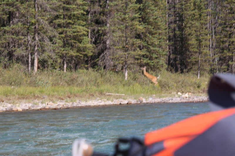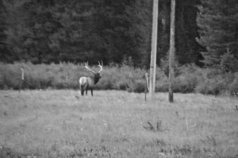 er liegt am bow river parkway etwa in der mitte unser geplanten paddeltour. der bow valley parkway ist ausserdem dafür bekannt um bären und rehe zu sehen. es dämmert schon, als wir den bow valley parkway richtung campground runter fahren, als plötzlich auf einer lichtung ein stattlicher hirsch weidet, den wir mit unserem infrarot nachtsichtgerät noch relativ gut erkennen können, obwohl es schon sehr dunkel ist. es ist mindestens ein 10 ender. eher mehr, aber so genau konnten wir es dann doch nicht erkennen. schon sehr beeindruckend.