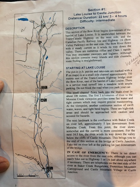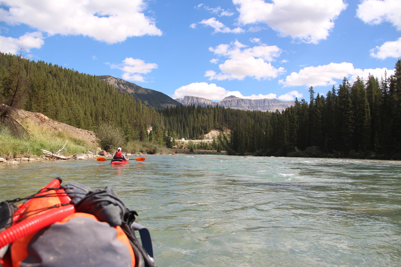 morgen wollen wir dann den bow river mit dem kajak bezwingen. allerdings sehr viel weiter flußabwärts. wir erkundigen uns vorher noch im visitorcenter wo man so etwas am besten machen kann, wegen möglicher stromschnellen oder gar wasserfällen. es gibt ein infoblatt mit 2 touren. beide führen den bow river zwischen lake louise und banff entlang. wir entscheiden uns für den oberen kürzeren und leichteren teil. er beginnt kurz nach lake louise und endet nach 22 km und 3-4 h in castle junction. wir beziehen dazu unser „basislager“ auf dem protection mountain campground. es ist ein sogenannter dry-campground, was heisst, es gibt nur einen stellplatz aber keinerlei medien wie strom, wasser oder abwasser. auch keine dumping-station. aber dafür mitten im wald, total ruhig und schön. und sehr preiswert.