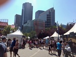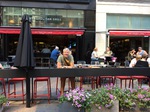 dazu durchqueren wir den stadtpark am bow-river. hier findet heute „the taste of calgary“ statt. ein straßenfest bei dem an diversen ständen streetfood angeboten wird. hier planen wir auf dem rückweg zu essen. wir überqueren den bow-river und gelangen zum kensington-village. bereits etwas müde, erholen wir uns bei einem kaffee in einer kleinen kaffeerösterei. das village besteht aus der 10. avenue und der kensington–avenue. ein wirklich sehr schönes, kleines stadtviertel mit vielen kleinen individuellen boutiquen, läden und restaurants. es gibt auch den safeway des viertels mit einem kleinen parkplatz. wir beschließen dort heute nacht zu parken. auf dem rückweg halten wir wie geplant bei the taste of calgary und essen chicken-wings und pulk-pork. beides sehr gut. wir kehren über die stephen-avenue zurück zur josi und fahren dann mit dem josch rüber zum safeway in kensington. heute gehen wir mal essen und kochen nicht. wir entscheiden uns für das dinner-ball. dort sitzen wir im 1. stock auf einer dachterrasse mit blick auf das viertel. ein offenbar angesagtes restaurant, denn es ist sehr gut besucht. das liegt vermutlich am sehr leckeren essen.