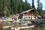 nun wandern wir am lake louise vorbei, den berg rauf zum lake agnes. der see ist nicht so spektakulär wie der lake louise, aber dafür das kleine am see befindliche teehaus.