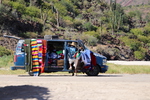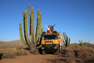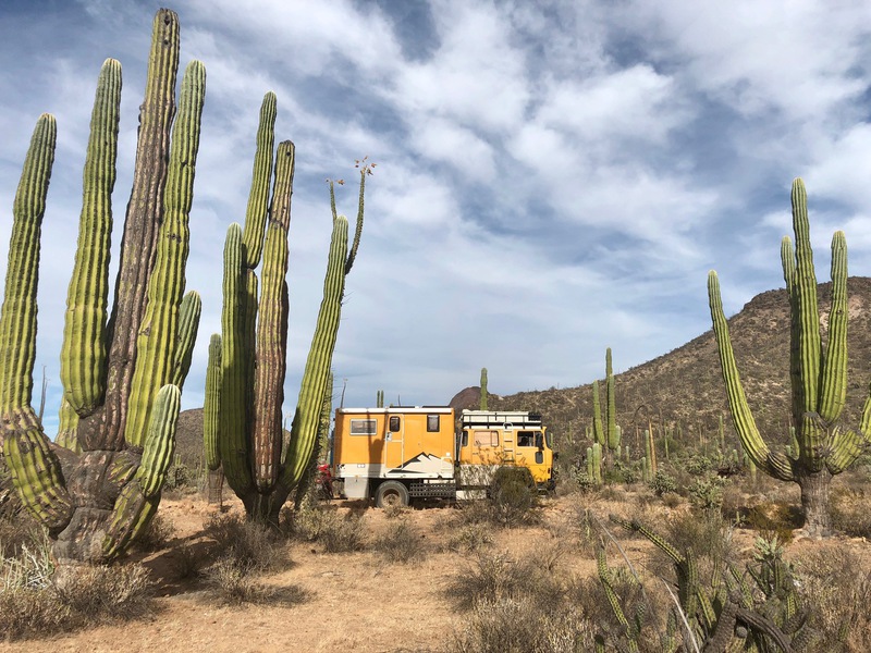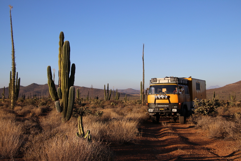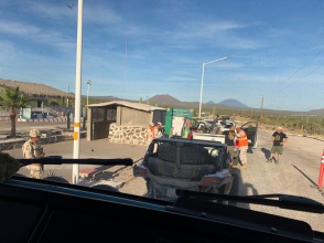 vor den toren von ensenada müssen wir unsere erste militärkontrolle absolvieren. wir sind ziemlich nervös. aber auch das verläuft ganz entspannt und reibungslos. einer der schwer bewaffneten soldaten klettert in die kabine und inspiziert alle schränke und lässt uns dann weiter fahren. es folgen noch viele weitere kontrollen, die meisten aber ohne inspektion der kabine.