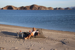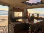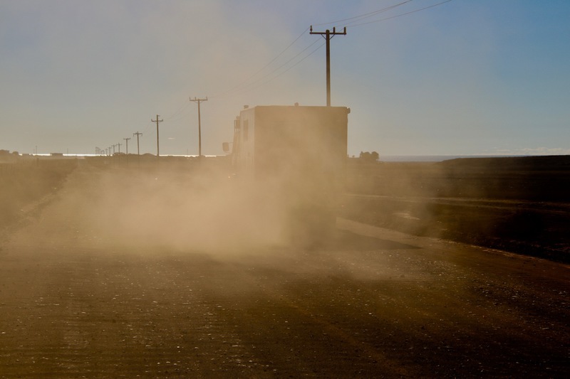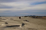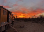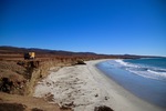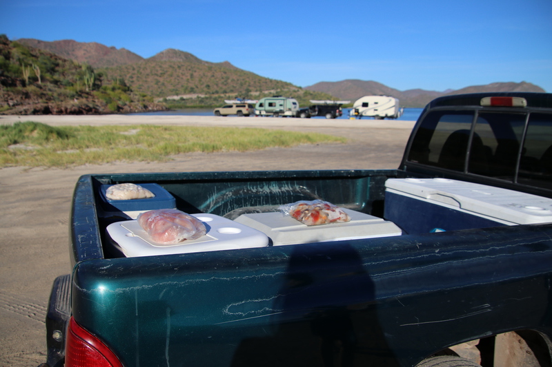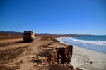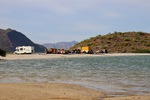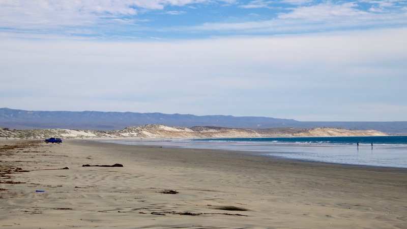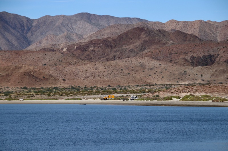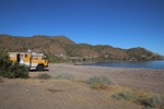 als wir um halb 5 aufbrechen, müssen wir noch kurz einige einkäufe machen und so fahren wir letztendlich um kurz nach 5 aus loreto ab. das ist definitiv zu spät, denn bis zum sonnenuntergang um 5:30 uhr ist der nächste campground nicht zu erreichen. erschwerend kommt hinzu, das alle 3 in unserem campingführer verzeichneten plätze nicht mehr existieren oder nicht auffindbar sind. so landen wir letztendlich im dunkeln, an einem fast einsamen strand. dort angelt nur ein mexikaner. der meint, dass das übernachten hier sicher und erlaubt ist. wir sind zwar nicht vollkommen beruhigt, aber da wir keine bessere alternative haben bleiben wir. allerdings setzen wir uns nicht mehr raus, sondern bleiben im josch und verriegeln alle türen. am morgen, bei sonnenlicht sieht alles sehr viel freundlicher aus und nach einem kurzen frühstück geht es weiter.