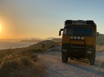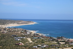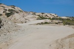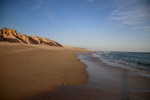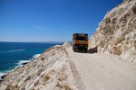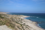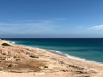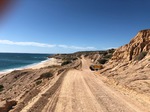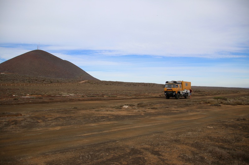 zum glück wird die straße ein wenig besser und wir erreichen einen total schönen küstenstreifen. man kann zwar nicht direkt an den strand fahren, aber es gibt eine ebene haltebucht, die perfekt ist zum übernachten. es kommen noch 2 männer auf ihrem quad vorbei die ca. 1km entfernt in einer baracke wohnen aber wir fühlen uns trotzdem sicher und bleiben. den abend verbringen wir auf unserer dachterrasse, von der aus wir den gesamten bereich gut überblicken können. morgens erklimmen wir einen der nahegelegenen hügel von dem man aus einen tollen blick über die küste hat, das anschliessende geplante bad im meer entfällt, weil uns die wellen zu hoch sind.