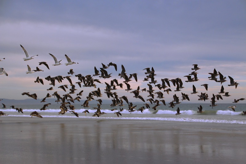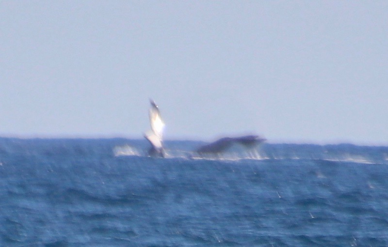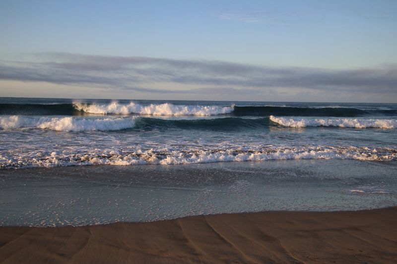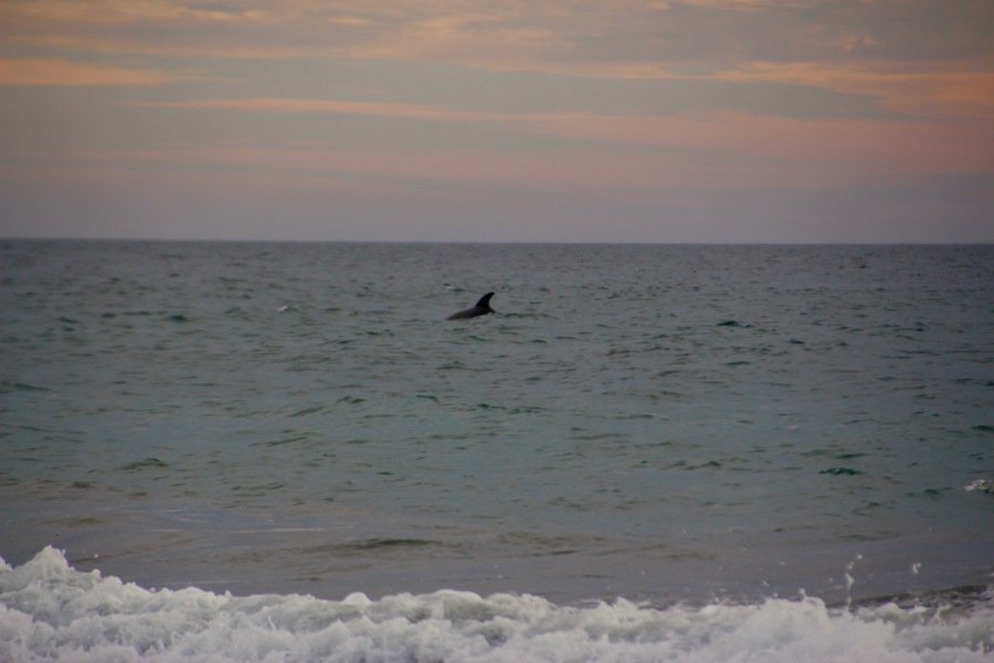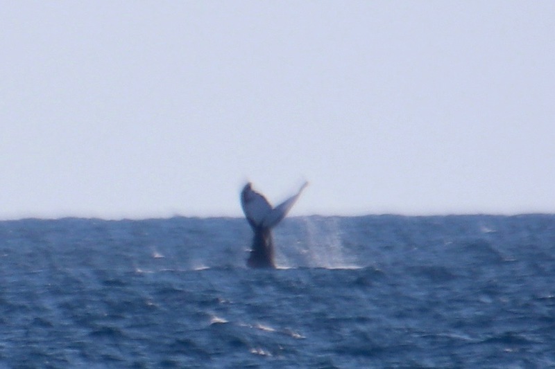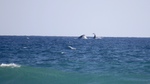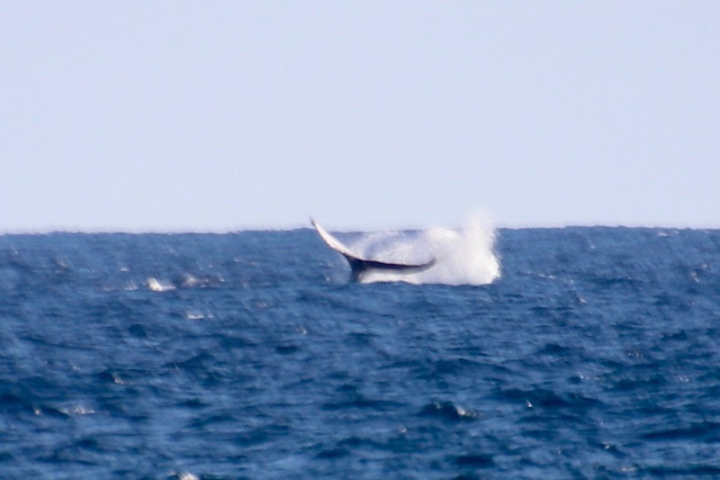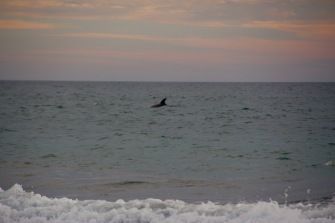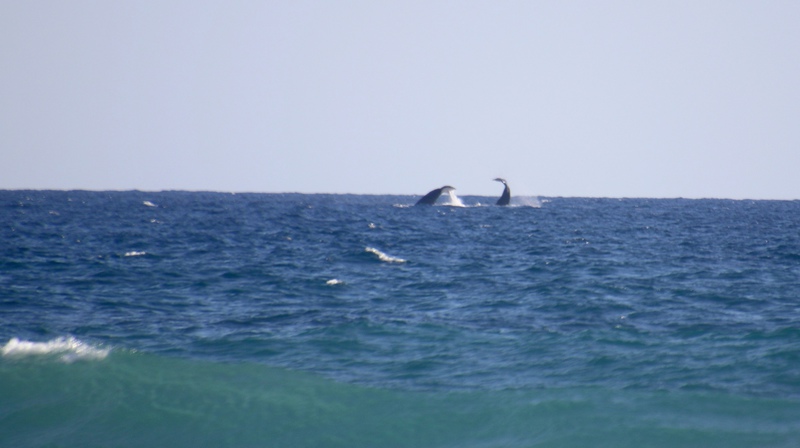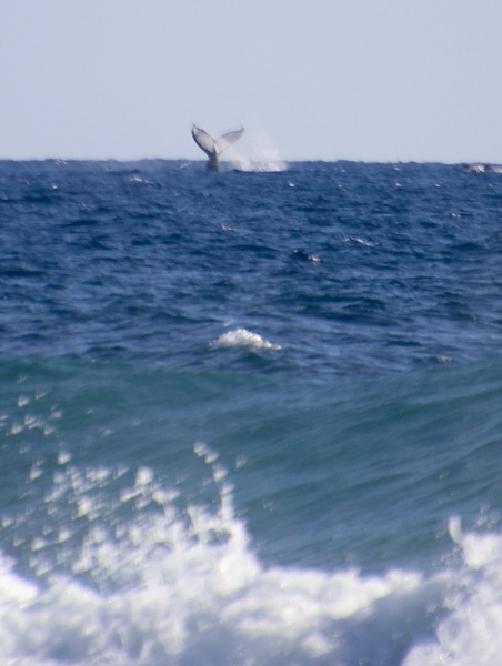 sicher insofern, weil ausreichend weit weg vom meer, um von der flut nicht überrascht zu werden. nachdem wir uns den schweiß und den sand bei einem bad im meer abgespült haben, sitzen wir vor dem josch und genießen den ausblick aufs meer. plötzlich entdeckt dani in ca. 500 m entfernung eine wasserfontäne. das kann nur ein wal sein. eigentlich ist jetzt noch keine walsaison. die beginnt erst anfang januar, wenn die wale aus dem norden hierher runter kommen. aber saison oder nicht, das sind eindeutig mehrere wale die ausgelassen spielen. immer wieder schlagen sie heftig mit ihren riesigen flossen auf das wasser. teilweise ragen flosse und halber hinterer körper sekundenlang wie versteinert aus dem meer, ehe dann der wal mit voller wucht die flosse auf das wasser schlägt und abtaucht. ein faszinierendes schauspiel, und das direkt vor der haustür.