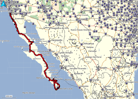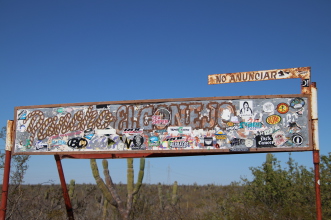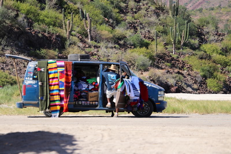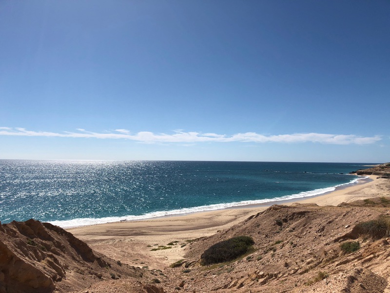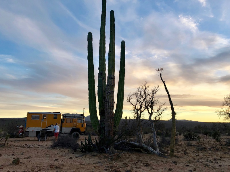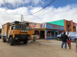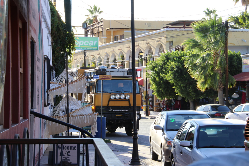 als wir den strand am kommenden tag entlang spazieren, sehen wir noch einen wal, aber sehr viel kürzer als am tag zuvor. als wir abfahren hat sich der bereich mit den euphorischen campern weiter gefüllt. es sind viele teilnehmer der aktuell stattfindenden baja 1000 hinzugekommen. die baja 1000 ist eine offroad rallye, die hier alljährlich stattfindet und in der nahegelegenen hauptstadt la paz endet. nach la paz wollen wir nun eigentlich. es ist aber komplett überfüllt mit teilnehmer und zuschauern der rallye. also stoppen wir kurz bei starbucks und walmart und fahren dann weiter nach todos santos. ein kleiner künstlerort am pazifik.