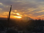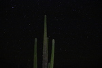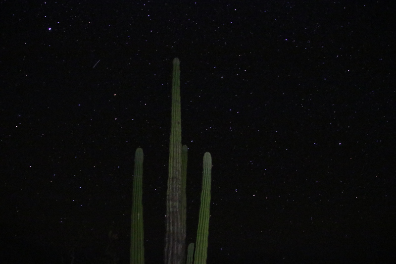 weiter auf der gnadenlos schlechten schotterpiste, die uns und dem josch alles abverlangt. immer wieder begegnen wir wanderer, die offenbar auf dem weg zur mission sind. als es zu dämmern beginnt, fahren wir von der schotterpiste ab, direkt in die kakteenlandschaft. dabei müssen wir um die kakteen slalom fahren um schließlich eine geeignete fläche zum übernachten zu erreichen. wir essen auch vor dem josch zu abend und können hier zum ersten mal auf der baja den sagenhaften sternenhimmel bewundern. es ist stockfinster und die sterne und die milchstrasse erstrahlen am firmament.