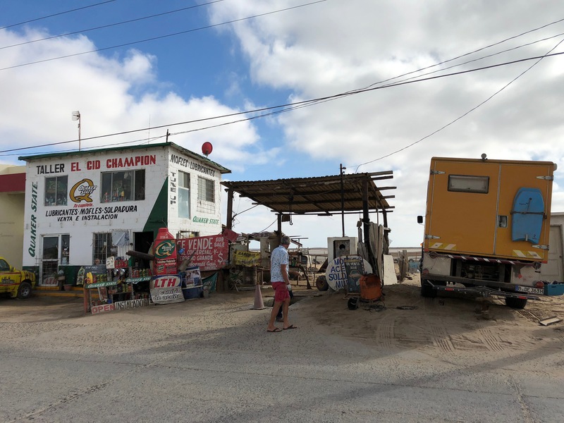nach weiteren 1,5 h schotterpiste erreichen wir dann endlich wieder die asphaltierte mex 1. welch ein genuß. der malarrimo rv park in guerrero negro ist zur abwechslung mal ein „richtiger“ campground mit strom, wasser etc. und er hat sogar ein gutes restaurant mit wifi. hier treffen wir auch das erste mal auf andere weltreisende. es sind 3 pärchen, alle aus deutschland. so ist der campground fest in deutscher hand.