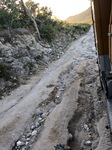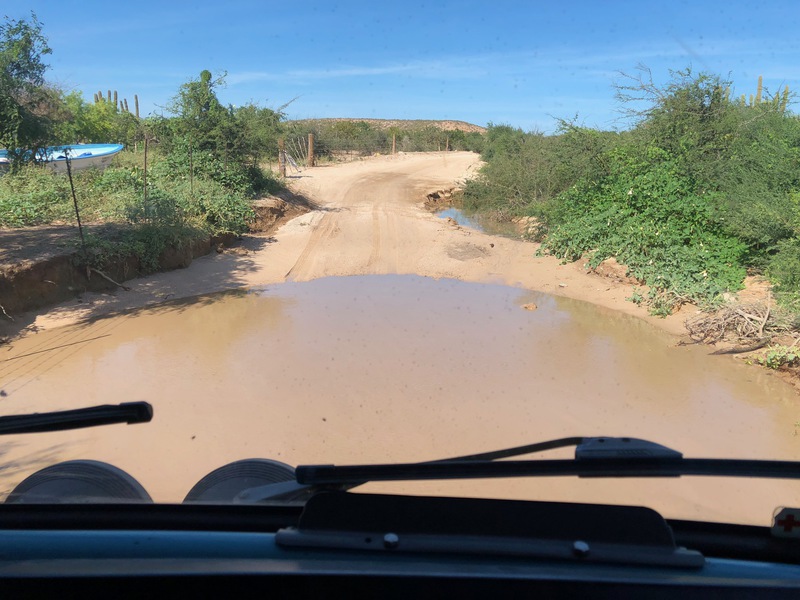 kurz nach san carlos verwandelt sich die küstenstraße ist eine horrorpiste. nicht nur das die straße sehr schmal und übersät ist von schlaglöchern, nein das schlimmste sind massive ausschwemmungen die ein weiterkommen teilweise nahezu unmöglich erscheinen lassen. an einer solchen stelle kommt uns ein motorcrossfahrer entgegen. er meint dass die vor uns liegende stelle die mit abstand schlimmste sei und es dann bald besser wird. na dann los. die stelle meistern wir relativ gut. allerdings wird es eher schlechter als besser. wenig später eine noch schlechtere stelle.
