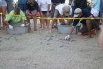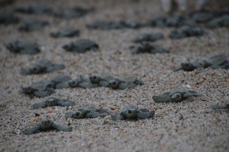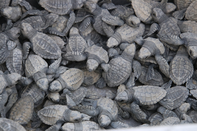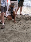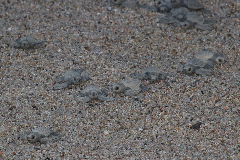 am nachmittag des nächsten tages können wir zeuge eines sehr besonderen schauspiels werden. es gibt hier eine organisation die sich der rettung der meeresschildkröten verschrieben hat. an diesem nachmittag werden ca. 300 gerade geschlüpfte babyschildkröten in die freie wildbahn entlassen. sie werden ca 10 m vom meer entfernt in den sand gesetzt und müssen dann mühsam den weg bis zum wasser bewältigen. da wird jede fußspur oder jeder kleine stein zum gigantischen hindernis. man will jeder einzelnen gerne helfen, aber sie sollen das alleine schaffen. wir wünschen jeder einzelnen dieser süssen kleinen schildkröten viel viel glück. am ende erwerben wir einen handbemalten teller und einen selbstgenähten stoffbeutel, um die organisation zu unterstützen.