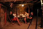 wir suchen unser glück in einem strandrestaurant und finden es bei leckerem essen, gutem wein und orignal mexikanischen männergesang. 2 gitarren, eine geige und ein kontrabass ziehen von tisch zu tisch und singen mexikanische lieder.