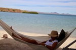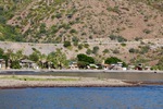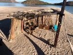 nachdem die mex 1 ein kurzes stück an der westküste entlang führt schwenkt sie anschliessend wieder nach osten, um erneut auf die andere seite der baja zu führen. dort wollen wir nun an die bahia concepcion. dort soll es traumhafte strände und stellplätze geben. kurz bevor wir die bahia erreichen, halten wir noch in mulege, einem kleinen süssen hafenort um noch ein paar kleinigkeiten einzukaufen. es ist zwar erst 7 uhr, aber inzwischen ist es dunkel und wir sind noch nicht am ziel. es hilft nichts. das letzte stück müssen wir im dunkeln fahren, finden aber zum glück den requeson campground ohne probleme. morgens können wir dann, sehr zu unserer freude feststellen, dass wir an einer superschönen ruhigen bucht stehen. wir parken noch um, an eine der kleinen offenen hütten aus palmenwedeln.