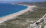 in den windstillen morgenstunden schnorcheln oder schwimmen wir und am nachmittag, wenn der wind aus norden weht, beobachten wir die kiter, gehen spazieren oder schlafen. abends dann, wenn der strand wieder menschenleer ist, machen wir unser lagerfeuer aus gestrandeten holz und essen vor dem josch. nur einen abend müssen wir weichen. als nämlich jemand den strandabschnitt für eine riesenparty nutzt und direkt neben uns eine rollende diskothek aufbaut, suchen wir das weite hinter dem nächsten berg in ca. 1 km entfernung. dort hört man zwar noch leise den baß, aber man kann schlafen. wir kehren zurück zu unserem platz und genießen zwei weitere ruhige tage.