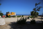 auch das auffinden der campgrounds aus unserem reiseführer ist nicht ohne. es gibt kaum hinweisschilder, und die strassen die dort hinführen sind teilweise kaum als solche zu erkennen. aber dafür sind sie toll gelegen, nahezu leer und sehr preiswert. bei fidel`s el pabellon an der bahia san quintin sind wir die einzigen und stehen direkt angrenzend zum strand. toller platz.
