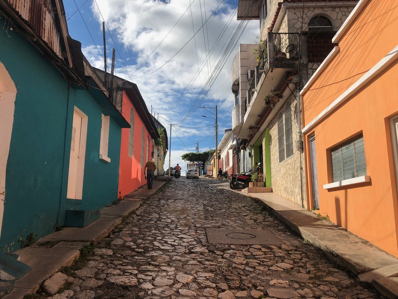 das zentrum von flores erinnert ein wenig an ein südfranzösisches bergdorf. es gibt dort viele kleine läden in denen guatemaltekische handarbeiten (tücher, tischdecken, schnitzereien etc.) angeboten werden. und jede menge restaurant, hostels und hotels. nachdem wir ein wenig in den läden gestöbert haben, bekommen wir langsam hunger.