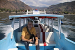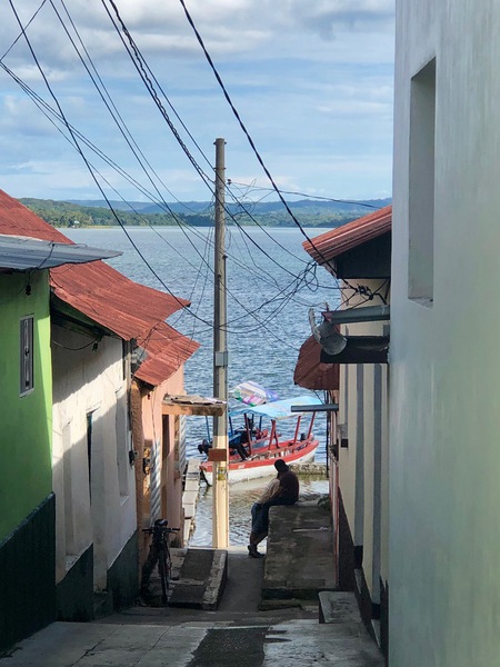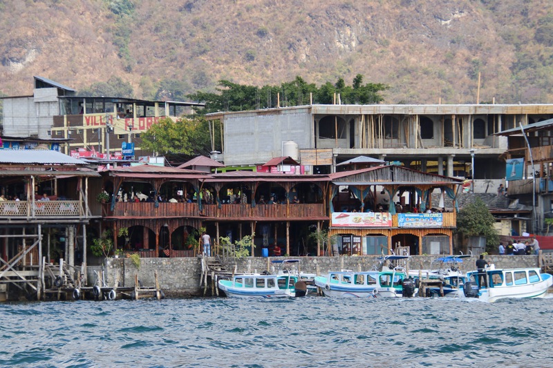 tags darauf chartern wir ein boot, um nach nach santiago de atitlán zu fahren. das liegt direkt gegenüber auf der anderen uferseite zwischen den vulkanen san pedro auf der einen, toliman und atitlan auf der anderen seite. dort angekommen erkunden wir den ortskern. viele kleine geschäfte mit diversen artikeln für touristen, ein paar cafés und restaurants. wir entspannen bei einem leckeren kaffee, um dann den rückweg anzutreten.