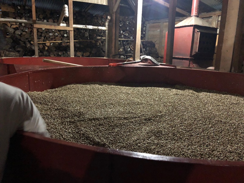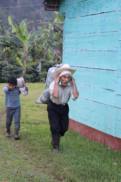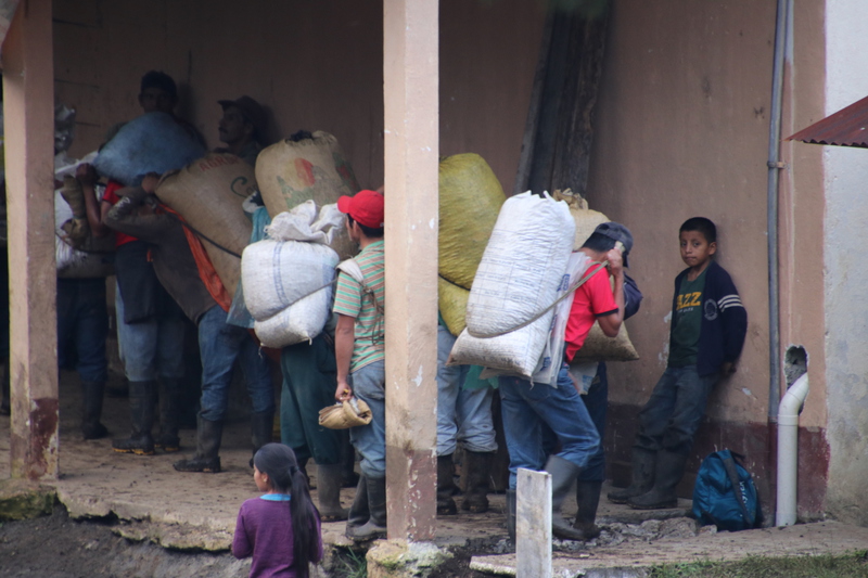 nach vielen stunden nähern wir uns coban, wo wir übernachten wollen. es gibt hier eine kaffeeplantage Chicoj (www.coffeetourchicoj.com) auf der man führungen bekommt aber auch campen darf. da wir beides gerne wollen, erscheint uns das perfekt. allerdings ist die anfahrt nicht ganz einfach. so landen wir zunächst in einer schmalen schlammigen sackgasse halb am berg in einer sehr einfachen gegend. zum glück finden wir nach etwas suche doch noch eine wendemöglichkeit. als wir die plantage erreichen, kehren gerade die erntehelfer mit ihren schweren säcken von der plantage zurück. alle altersgruppen sind beteiligt. von sehr alt bis ganz jung. wir erleben der 1. teil der führung gleich heute abend. zunächst wird die jeweilige ernte gewogen, denn danach erfolgt die bezahlung der helfer (ca. 5 €/tag). ein guter erntehelfer schafft am tag bis zu 140 lbs (das sind über 60 kg). und diese säcke schleppen die männer auf dem rücken aus der plantage. als erstes werden die früchte (kirsche) mittels einer maschine entkernt. jede hat 2 kerne, die die eigentliche kaffeebohne enthalten. die kerne müssen aber nun zunächst 16 h mit wasser in großen becken fermentieren. dadurch wird, die den kern umgebene schleimschicht (honig) abgelöst. nach der fermentierung, werden die kerne gewaschen und dann getrocknet. zunächst 18 h in einem offenen bottich und dann in eine trocknungstrommel 36 h mit 60 °c. dabei öffnet sich die schale des kerns und die eigentliche bohne (oro) wird frei gelegt. der letzte schritt ist die verpackung der ungerösteten bohnen in 40 kg säcke. so kann der kaffee verschifft werden.