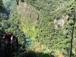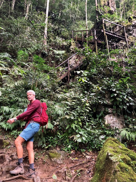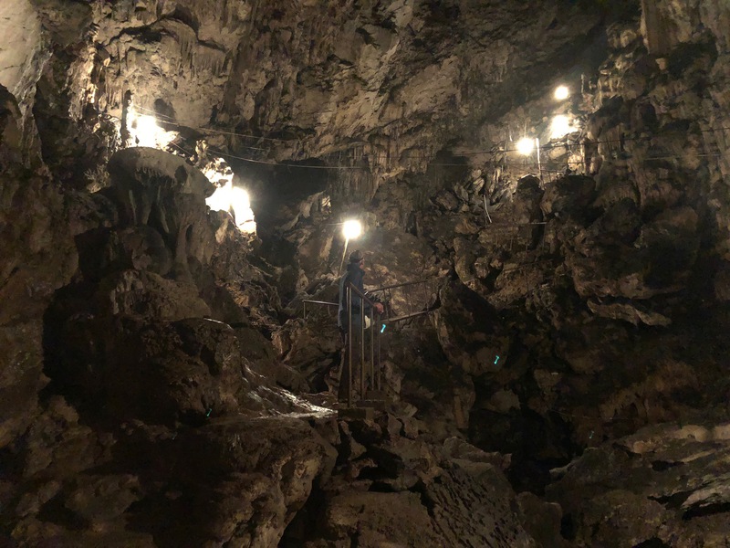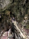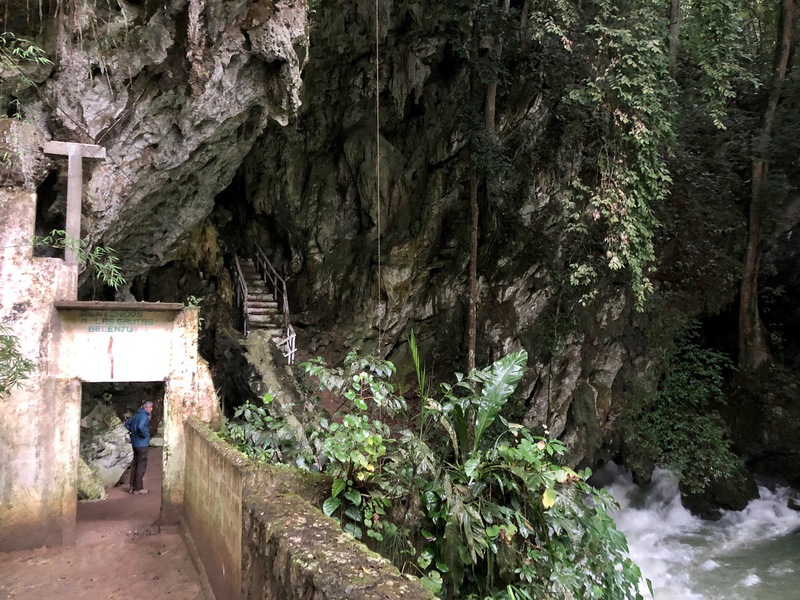 schnell laden wir die josi ab und fahren bevor es dunkel wird zu einer nahe gelegenen höhle grutas de lanquin. nicht nur dass wir fast die einzigen sind, man kann die höhle alleine begehen und das was man dort zu sehen bekommt ist einmalig. ich weiss, dass ich schön öfter von filmkulissen geschrieben habe, aber die sind eben auch oft so besonders. und die höhle könnte aus indiana jones sein. welcher teil fällt mir gerade nicht ein. der wo sie mit der lore durch die höhlen rasen. diese höhle ist beleuchtet was uns sehr gut gefällt. dadurch kann man viel besser die dimensionen erfassen. wir sind total begeistert. nach ca. 30 min drehen wir um, denn wir wollen pünktlich um 18 uhr - zum sonnenuntergang - am ausgang sein. denn dann fliegen tausende - und das ist eher eine untertreibung – von fledermäusen aus der höhle direkt an uns vorbei ins freie. manchmal spürt man den lufthauch am kopf, wenn sie ganz dicht an uns vorbei fliegen.