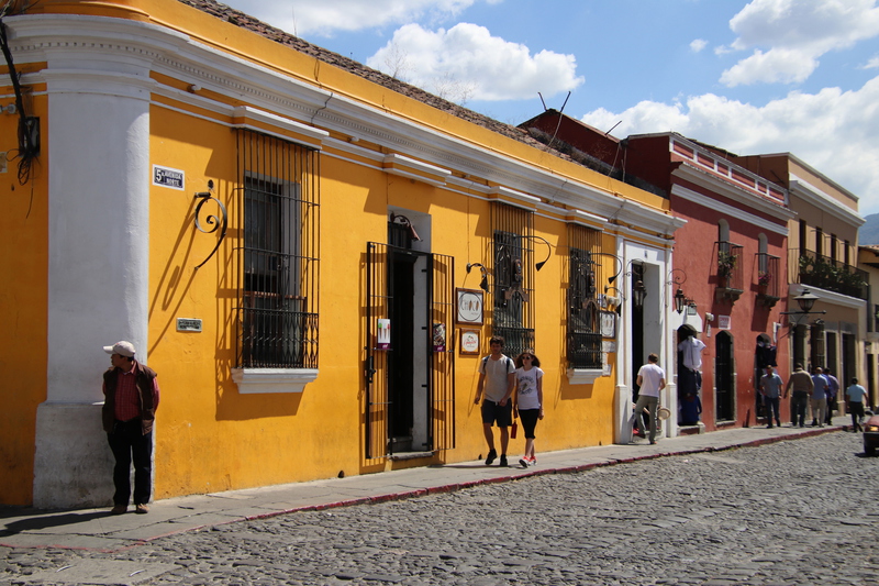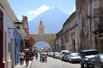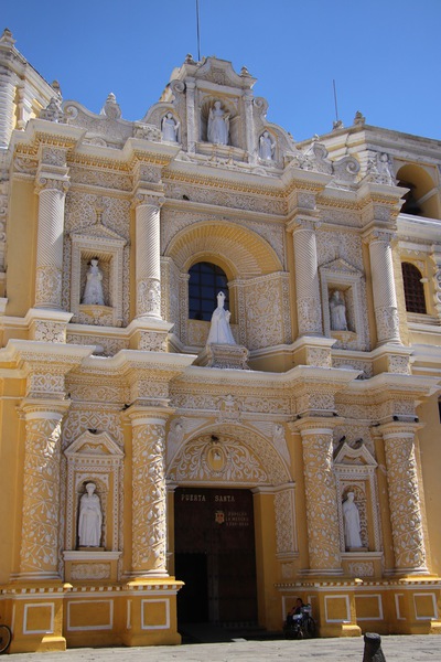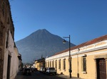 antigua ist die ehemalige hauptstadt des generalkapitalats guatemala, bestehend aus guatemala, honduras, el salvador, nicaragua und costa rica. aufgrund vieler zerstörungen durch erdbeben und vulkanausbrüchen wurde die hauptstadt dann irgendwann nach guatemala city verlegt. man sieht antigua seine historische bedeutung an. früher hauptstadt eines riesigen landes, reich und berühmt, gespickt mit herrschaftlichen häusern villen, kirchen und klöstern, straßen und alleen. und alles einheiltich dem kolonialen stil der damaligen zeit folgend. heute immer noch im kolonialen stil, alles darauf ausgerichtet dem besucher ein realistischen bild der damaligen pracht und bedeutung der stadt zu vermitteln. und das gelingt antigua sehr gut. nicht übertrieben, sondern mit dezenten charme, dem jeder besucher erliegen muss. natürlich auch wir. wenn man durch die gepflasterten strassen bummelt, kann man immer wieder einen blick auf eine der die stadt säumenden 3 vulkane erhaschen. acatenango, fuego und agua. die letzten beiden zwar noch aktiv, wenn auch im moment gerade rauchend oder feuer spuckend nicht. antigua hat zwar keinen campground für große autos wie den josch, aber dafür kann man auf dem gelände der „policia turismo“ umsonst übernachten. einziger haken. man darf nicht länger als 5 tage hintereinander hier bleiben. hatten wir aber eh nicht vor. das gelände liegt direkt am zentrum und wird rund um die uhr von der polizei bewacht . sicherer geht es kaum noch.