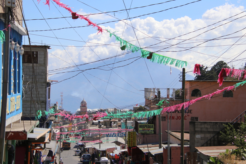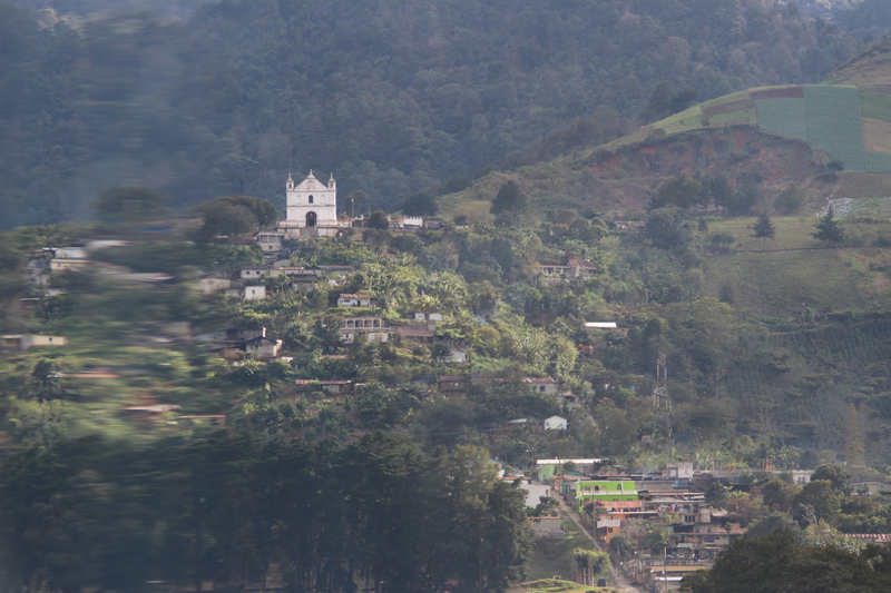 dafür bietet sich ein ausflug in ein kleines dorf an, welches ca. 40 fahrtminuten entfernt liegt. in san antonio aguas calientes werden die klassischen guatemaltekischen stoffe noch von hand gewoben. die fahrt mit dem bus erfüllt unsere erwartungen, der ort san antonio nicht. es gibt ein gebäude in dem ca. 10 frauen am boden sitzen und stoff weben. sobald man sich nähert, springen sie auf und präsentieren die typisch aufdringliche gualtemaltekische verkaufsstrategie. sie legen dabei ein tuch nach dem anderen offen, so schnell dass man gar keine zeit hat jedes einzelne auch nur annähernd zu betrachten. dann eben nicht. wir drehen noch eine runde durch den ort und kehren dann mit den nächsten bus zurück.
