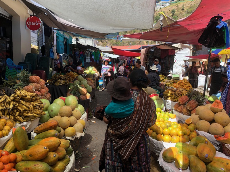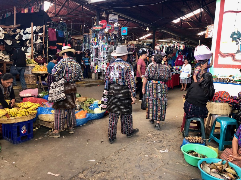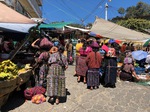 wir machen halt in sololá. hier ist heute, am freitag (immer dienstags und freitags) markttag. das lassen wir uns natürlich nicht entgehen. es sind nicht nur alle frauen in trachten, sondern auch sehr viele männer. sie tragen bunte 3/4 lange hosen und dazu ein ebenfalls buntes hemd mit scherpe. diese trachten stehen sowohl den frauen, als auch männern sehr gut. das angebot auf dem markt umfasst wieder das volle sortiment. stoffe, lebensmittel aller art, haushaltswaren, werkzeuge, aber hin und wieder auch tiere wie küken oder hundewelpen. letzteres aber eher selten. wir wollen uns noch einen weiteren stoff kaufen. die vielfalt der muster und farben macht die entscheidung nicht unbedingt leichter. aber am ende finden wir einen, von dem wir hundertprozentig überzeugt sind. nach harten und zähen verhandlungen nehmen wir ihn mit.