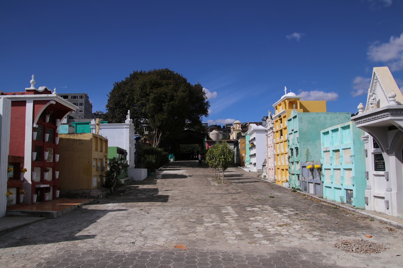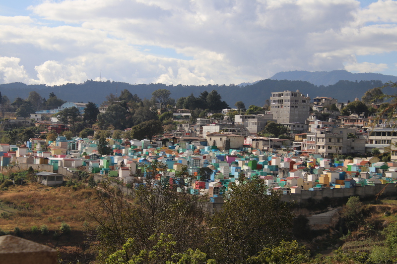 anschließend besuchen wir den cementerio von sololá, er liegt an der, dem atitlàn see zugewandten seite, der stadt. da sololá ca. 500 m oberhalb des sees liegt, hat man von hier einen sehr schönen blick auf den see und seine umgebung. der friedhof selbst ist typisch für zentralamerika. alle mausoleen in den verschiedensten farben und formen. allerdings etwas überraschend liegt auch hier sehr viel müll rum.