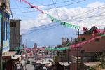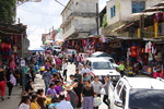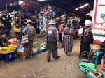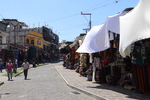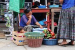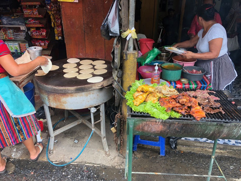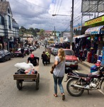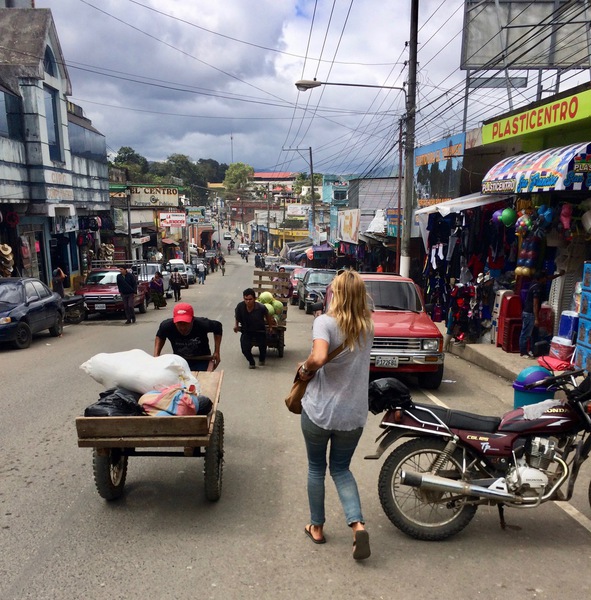 um von hier aus, nun unser eigentliches ziel, semuc champey zu erreichen, müssen wir durch coban durch. und wie so oft führt uns das navi mitten durchs zentrum. genau durch die straße wo heute markt ist. man kommt kaum durch. überall stände halb auf der straße und die verkäuferinnen in ihren typischen trachten. in diesem fall sind wir froh, denn der markt gefällt uns so gut, dass wir den josch ein stück weiter parken, um uns die sache näher zu betrachten. in einem kleinen schuhladen entdeckt dani schöne gummistiefel. der rechte passt wie angegossen. farbe und preis stimmen auch. nun muss nur noch der linke her. und der scheint verschwunden. im laden jedenfalls findet ihn niemand. der inhaber schickt seinen sohn los um in der nachbarschaft einen linken zu besorgen. nachdem wir ca. 15 min vergeblich gewartet haben und auch keine aussicht besteht, dass der linke stiefel auftaucht, müssen wir leider ohne stiefel den laden verlassen. der laden brummte wirklich nicht, und da will jemand was kaufen dann fehlt der 2. schuh. unglaublich. kurze zeit später sind wir in einem der vielen stoffläden erfolgreicher. der laden scheint aufs verkaufen vorbereitet, hat sehr schöne stoffe, gute beratung und faire preise. apropos gute beratung. das ist manchmal ein echtes problem. die guatemalteken scheinen zu glauben, dass man mit penetranz und auf den kunden einhämmern erfolgreich verkauft. man fasst beispielsweise einen stoff an um ihn sich genauer anzusehen, schon springt jemand auf und hält einem ohne unterlass andere stoffe in völlig anderen farben unter die nase und ruft „good price my friend, many colours, you can see“ oder leicht abgewandelt. nervt manchmal etwas und bewegt uns oft dazu weiter zu gehen obwohl wir nicht fertig geguckt haben.