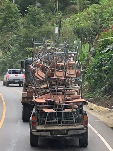 der direkte und damit auch kürzeste weg nach semuc champey, unserem nächsten ziel, führt über eine haupt-, dann nebenstraße und am ende über einen pfad. wir haben schon gelesen, daß insbesondere die letzten 10 km auf dem pfad eine echte herausforderung sein sollen. als wir nach ca. einer halben stunde nur wenige kilometer auf der hauptstrasse voran gekommen sind, entschliessen wir uns den wesentlich längeren, aber wohl gut ausgebauten weg zu nehmen. die ca9, auf der wir nun fahren, ist die hauptverbindungsstraße zwischen dem östlichen teil von guatemala und guatemala city. leider auch nur einspurig und insofern manchmal auch nicht so schnell wie wir könnten. dafür können wir in ruhe die beeidruckende natur guatemalas und so manch eigenwillig beladenen pick up bestaunen.