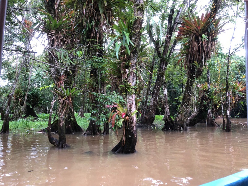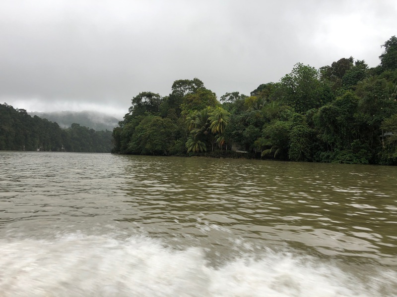 dort wo der rio dulce in die karibische see strömt, liegt livingston. der name klingt schon nicht guatemaltekisch und livingston ist auch anders. es ist eine kleine garifuna enklave. ihr erinnert euch. das sind nachkommen von afroamerikanern und ureinwohnern zentralamerikas (siehe belize). der schnellste und vor allen dingen schönste weg dorthin führt über den rio dulce per boot. es war zwar kein regen angesagt, regnet aber trotzdem. in regenjecke und mit plastikplane über den beinen geht es los. auf der strecke werden noch andere gäste abgeholt und so fahren wir auch mal rechts und mal links in kleine seitenarme die von magroven und anderen tropisches pflanzen gesäumt werden. der regen hat fast aufgehört, als wir den canyon del rio dulce durchfahren. links und rechts nahezu senkrechte felswände an denen sich die tropische vegetation empor hangelt. kein haus, kein mensch nichts ausser steile felswände und urwald.