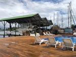 heute sind wir seit langem mal wieder etwas spät dran. als wir rio dulce erreichen ist es stockfinster, und die beleuchtung der stadt ist nicht so, dass man besonders gut sieht. dani hat bei ioverlander einen nachtplatz direkt am lago izabal entdeckt. bruno`s hotel. aber aufgrund der mangelnden sicht, fahre ich falsch über die brücke auf die andere seite des sees. sind hier nur wenige hundert meter. wenden ist auf der relativ schmalen straße nicht so ohne weiteres möglich. aber auf dieser, anderen seite gibt es eine marina die lt. ioverlander auch übernachtungsplätze für camper anbietet. mithilfe von 2 guatemalteken finden wir „mar marine“ (www.marmarine.com). auf den ersten eindruck ist es nur eine abstellfläche für boote mit einem kleinen bootszubehörladen. aber wie schon so oft, trügt der 1. eindruck. und hier ganz gewaltig. hatten wir eben noch befürchtet gleich neben der einfahrt neben den booten zu stehen, fahren wir nun in den weiter hinten am see liegenden bereich. und der ist eigentlich unglaublich. eine herrliche marina, mit pool, total schönem restaurant, sauberen wc´s, super sicher und das direkt am lago izabal. für guatemala zwar recht teuer aber verglichen mit den usa ein superschnäppchen. ich vergleiche hier mit den usa, weil es vom standard ebenso gut dort sein könnte. hier kann man vielleicht dem geneigten leser die bedeutung von rio dulce kurz erläutern. der rio dulce und lago izabal, ist ein bei seglern beliebter und sicherer platz zum überwintern bzw. um die hurrikanesaison sicher zu überstehen. so findet man hier alle arten und größen von yachten und eben auch entsprechende marinas, die auf ihre segelgäste vorbereitet sind.