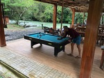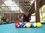 da das wetter erst morgen sonnig sein soll, und ich etwas angeschlagen bin, verbringen wir einen ruhigen tag im josch und im restaurant am fluss. spielen dort billard und überlegen wie wir morgen am besten nach champey kommen.