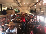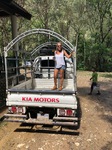 auf der rückfahrt sind wir fast allein. und da wir jetzt ja auch die strecke kennen, wagen wir uns auf der ladefläche den weg zurück. da nur noch ein anderes pärchen mitfährt, haben wir viel platz und dann fährt es sich fast besser als drinnen. stehend kann man die ganzen holper viel besser abfedern. man muss sich nur gut festhalten.