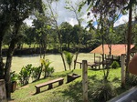 wir kommen im el retiro resort (www.elretirolanquin.com) unter. eigentlich ein hostel mit vielen kleinen cabanas und einem total schönen restaurant direkt am fluss. wir stehen etwas weiter oben am grundstückeingang.