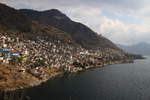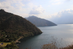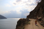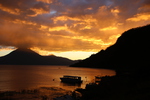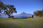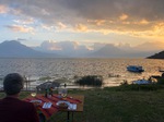den nachmittag nutzen wir zu einem ausflug mit der josi. wir fahren die küstenstrasse entlang. eine relativ schmale immer am see verlaufende bergstrasse. die strasse geht permanent rauf und runter. so verläuft sie mal auf seeniveau, manchmal aber auch hoch über dem see mit schönem panoramablick. wir stellen fest, dass es hier neben den kleinen ortschaften (sta. catarina de polopó), auch teilweise prachtvolle villengrundstücke am see gibt. nachvollziehbar, denn landschaftlich ist das hier total schön. der see inmitten von grünen bergen und den 3 vulkanen. auf dem see, überall kleine boote die zwischen den ortschaften pendeln. wirklich sehr idyllisch. irgendwann wird die strasse dann so steil, daß wir mit der josi die steigung nicht bewältigen können. hier wird es auch sehr einsam und die strasse sehr schlecht. also drehen wir um. auf dem rückweg machen wir halt in einer kleinen stoffwerkstatt und ergänzen unser sortiment um 2 tischläufer, um anschliessend auf der josi fahrend zu erleben, wie die sonne langsam auf der anderen seite des see spektakulär untergeht.