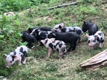 von der grenze führt die einzige hauptstrasse direkt nach flores. auf dem weg dorthin, passieren wir immer wieder kleinere dörfer. es scheint so, als spielt sich das leben in diesen dörfern an der straße ab. auf beiden seiten, massenweise hühner, schweine, hunde, truthähne, manchmal auch kühe oder pferde und mittendrin die guatemalteken. in einem dorf mit besonders vielen kleinen schweinen halten wir. die schweine gehören zu einem grundstück, das direkt an der straße liegt. keine zaun, keine mauer, nichts hindert die tiere daran auf die straße zu laufen. wir fragen die bäuerin ob wir fotos machen dürfen. sie freut sich und holt uns eines der kleinen ferkel. es wehrt sich so gut es kann. quiken kann es nicht, denn die frau hält ihm einfach die kleine schnauze zu. als dani es dann wieder auf den boden setzt, läuft es laut und empört grunzend zurück zu dem rest seiner familie. zwischendurch hatte der eine hund des grundstücks sich zu sehr einem der kücken des truthahns genähert, was dem truthahn gar nicht gefallen hat. aber nach kurzem bellen und flügelschlagen haben sich die beiden „streithähne“ wieder vertragen.