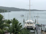 neben den booten die im wasser liegen, gibt es hier auch trockenunterstände für boote. die sind alle bis auf einen belegt. wir fragen, ob wir uns dort mit dem josch unterstellen dürfen um unser oberlicht abzudichten. aber leider kommt das boot, dem dieser platz gehört, heute noch zurück. aber die eigentümerin meint, dass sie einen anderen platz frei machen lassen kann. es gibt boote die ihr gehören, die mal ein paar tage im regen stehen können. wir sind begeistert und nehmen an. nicht nur, dass wir jetzt das oberlicht abdichten können. nein wir können auch endlich alle handtücher und schüsseln wieder ihrer ursprünglichen nutzung zuführen und auch bei regen gemütlich an unserem tisch sitzen. und was dem ganzen die krone aufsetzt, ist folgendes. die marina hat einen eigenen tischler, der uns die, für die reparatur notwendigen holzleisten (4 stück 40x40 630 mm lang) auf mass innerhalb von 2 stunden produziert. natürlich in teak. für den josch nur vom feinsten. der rest erledigt sich dann fast wie von selbst. nun haben wir einerseits wieder ein vollständig dichtes dach und andererseits haben wir den verregneten tag sinnvoll genutzt.