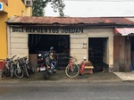 in einer regenfreien minute erkunden wir zu fuss den ort rio dulce. er besteht eigentlich nur aus der durchfahrtsstrasse, an die sich alle geschäfte angesiedelt haben. sogar ein kleiner fahrradladen (bicicletteria). das mit der regenfreiheit hat sich aber schnell erledigt. so kehren wir im strömenden regen zurück.