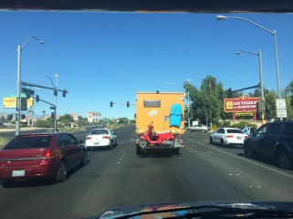 von san diego bis las vegas sind es knapp über 500 km. die wollen wir bis spätetens 16 uhr hinter uns gebracht haben, um dann bei brc, der werkstatt wo der josch repariert wird, anzukommen. zwar soll er erst am kommenden montag fertig werden, aber wir denken dass es gut und wichtig ist früher nach dem rechten zu sehen, um ein böses erwachen am montag zu vermeiden. nach der hälfte der strecke, als wir eine pause machen kann dani unsere spiegelreflexkamera nicht finden. wir suchen das gesamte auto ab. vergeblich. sie ist verschwunden. wir müssen sie gestern irgendwo liegen gelassen haben oder sie wurde uns gestohlen. auf der fähre hatten wir sie noch. sofort rufen wir die fährgesellschaft, die bar und lucky brands (da waren wir auch kurz drin) an. alle sagen, dass die kamera nicht gefunden wurde. zur sicherheit und aus verzweiflung schicken wir an alle noch eine mail mit der bitte nochmals alles zu durchsuchen. wir sind tot traurig. die kamera mit allen bildern ist weg. zum glück zieht dani fast täglich die bilder auf den rechner.