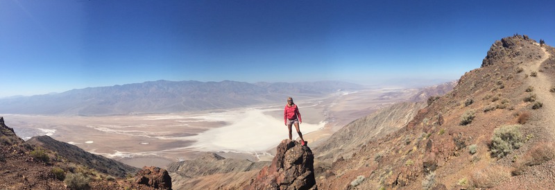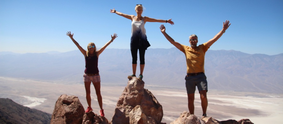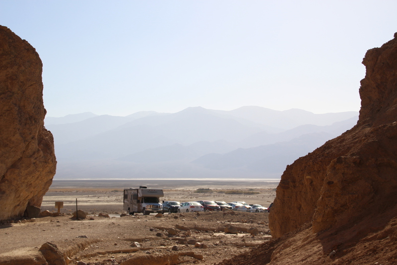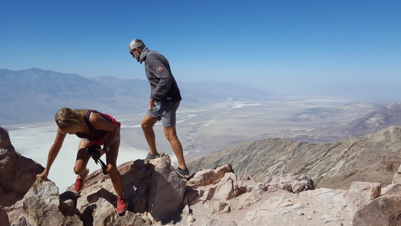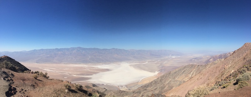 dante´s view nennt sich der aussichtspunkt oben in den bergen. von hier (1669 m) aus hat man einen grandiosen ausblick über das gesamte death valley. es gibt ein paar kurze wanderwege auf die nebenliegenden berge die wir erkunden, um den besten blick auf`s tal zu finden. death valley nennt sich nicht umsonst „tal des todes“. es ist teil der mojave wüste und das trockenste und heisseste tal der usa. im sommer werden hier temperaturen von über 50 °c gemessen