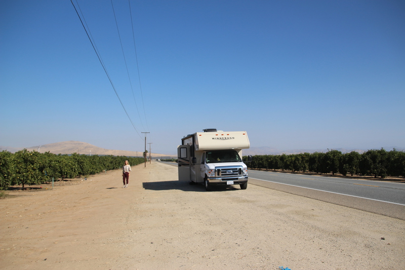 all die orangen für den berühmten kalifornischen direktsaft (hitchcock, simply orange usw). wir frühstücken direkt am rande einer dieser plantagen und probieren eine orange direkt vom baum. sie ist