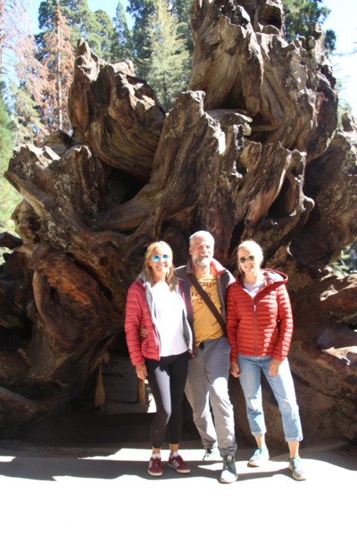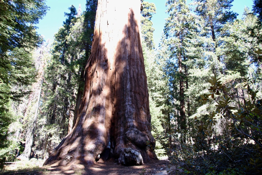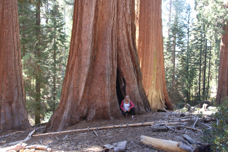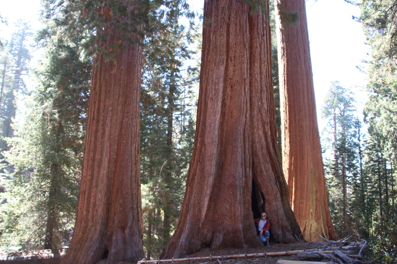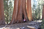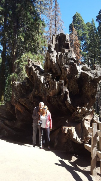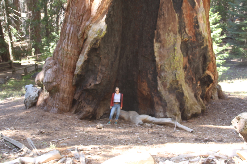 als wir am visitorcenter ankommen erklärt man uns, dass wir mit unserem camper die strecke in den park nicht fahren dürfen. er ist zu lang. einen shuttle bus gibt es auch nicht. einzige möglichkeit ist zu dem ca. 50 km weiter nördlich gelegenen eingang in den park zu fahren. so hängen wir also noch mal weitere 50 km ran. aber all die fahrerei hat sich gelohnt. die riesensequoias (mammutbäume) sind unglaublich. wir fragen uns warum ausgerechnet hier, und scheinbar nur hier diese mammutbäume wachsen. wie auch immer, wir sind total fasziniert und versuchen so gut es geht die größe dieser bäume auf einem bild einzufangen. nicht ganz korrekt übersteigen wir auch die zäune, um direkt am giant tree zu stehen. nur so kann man einen ungefähren eindruck von den dimensionen bekommen. der general grant tree, den wir hier bestaunen, ist 81 m hoch, hat einen stammdurchmesser von 10 m und ist ca. 2000 jahre alt. er ist der 2. größte im park. der größte ist der general sherman tree. er steht weiter im süden ist 84 m hoch und hat eine durchmesser von 12 m. also nur unwesentlich größer. es sind auch nicht nur die sequoias, sondern auch die übrige vegation, die die faszination dieses parks ausmacht.