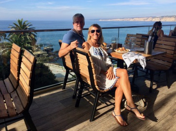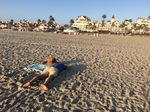 na gut, dann geht es eben gleich zurück an die küste. unser erster stop südlich von los angeles ist newport beach. die strandpromenade mit dem schönen alten pier, den kleinen ferienhäusern im wechsel mit bars, restaurants und läden gefällt uns sehr gut. das parken mit dem erheblich längeren winnie minnie ist nicht ganz ohne. aber nach kurzer suche finden wir in einer kleinen seitenstraße einen platz. hier denken wir, können wir auch über nacht bleiben. vorher erkunden wir aber noch die stadt. newport beach hat eine große marina, die an einer lagune liegt. es gibt einige sehr ansprechende restaurants. wir haben zwar schon gegessen, genießen aber noch ein glas wein direkt an der lagune.