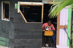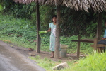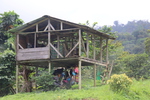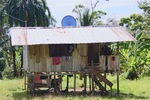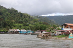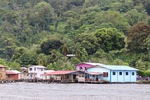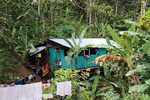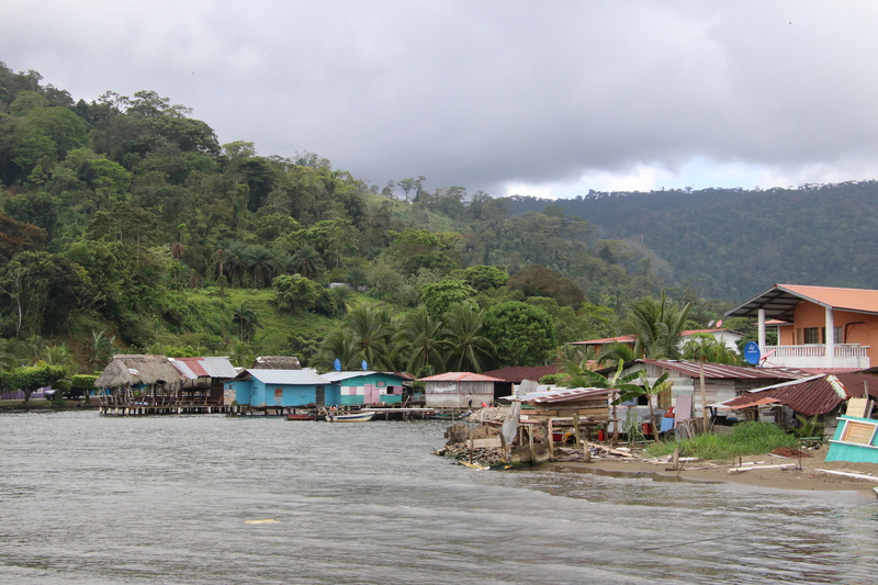 also fahren wir weiter. die einzige strasse, die es hier gibt führt zunächst an der küste entlang. bereits hier zeigt sich „oh wie schön panama ist“. bis dicht an die kurvenreiche strasse, reicht die üppige, supergrüne vegetation. es geht bergauf und bergab, was dank unserer neuen kupplung kein problem darstellt. spätestens hier hätte die alte den geist aufgegeben. ab und an kann man wenn die vegetation nicht zu dicht ist, einen blick auf die karibik und die vielen vorgelagerten inseln erhaschen. oder auf eine der „behausungen“ die sich am rande der strasse eingebettet in die vegetation befinden. die häuser stehen auf stelzen und haben weder fenster noch türen. die wände sind alle nur ca. 1,5 m hoch und bestehen aus ungehobelten brettern. darüber ein blechdach und fertig ist das haus. alles sehr luftig jedoch auch für jedermann einsichtig. ganz zu schweigen, von den insekten die hier sicher nachts anzutreffen sind. aber alle wirken sehr glücklich.