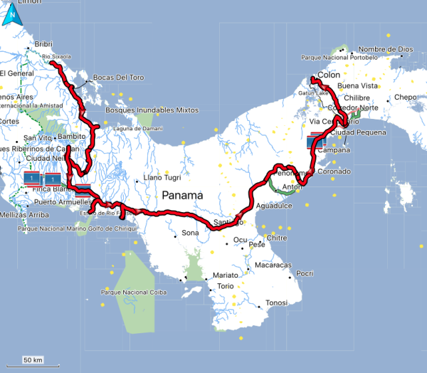 nach etwas mehr als einem monat verlassen wir am 11.4. 2018 costa rica und reisen in guabito an der karibikwüste nach panama ein. die grenze von panama ist sehr einfach und ziemlich heruntergekommen, wenn die papiere für den josch nicht über eine stunde gedauert hätten, wären wir hier in absoluter rekordzeit eingereist. übrigens der letzte grenzübertritt in mittelamerika.