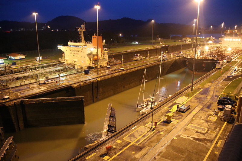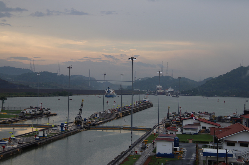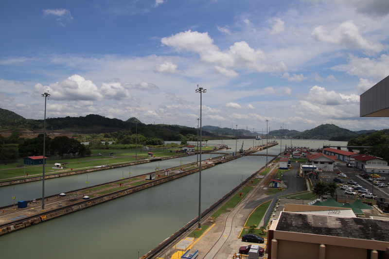 leider ist das wetter in diesen letzten tagen etwas regnerisch. ursprünglich wollten wir 3 tage auf eine der san blas inseln. das sind ganz kleine inseln vor der karibischen küste mit traumhaften stränden und türkisblauem wasser. wenn die sonne scheint. aber es ist immer nur regen angesagt. also fahren wir nicht und verbringen die tage in panama city. wir besuchen die miraflores schleusen. sie sind eine von insgesamt 3 schleusen die man bei der durchfahrt durch den panamakanal passieren muss. es gibt dort auch ein kleines museum und einen film zum panamakanal. wir verbringen dort fast den gesamten tag, denn leider kommen erst um 5 uhr die ersten schiffe, um die schleuse zu passieren. Eine passage durch den kanal kostet übrigens je nach grösse des schiffes zwischen 800 und 1 million dollar. Angesichts dieser zahl wundert es nicht, dass der kanal eine der wichtigsten ressourcen panama’s darstellt.