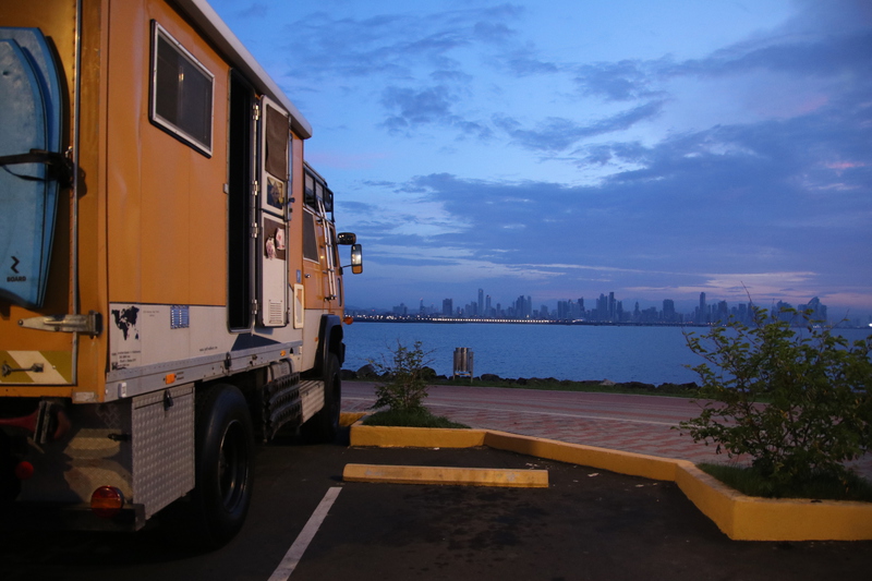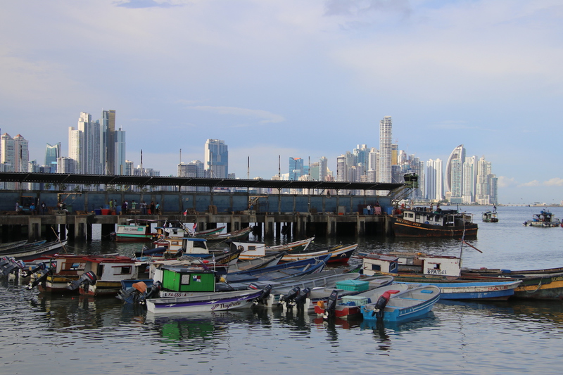 die vorletzte etappe panama city, erreichen in ca 2 h. der weg in die innenstadt, führt vorbei an den miraflores schleusen. neben uns fährt ein containerzug der „panama canal railway“ mit dröhnendem signalhorn vorbei. bei der fülle an eindrücken am wegesrand, stört es uns kaum, das wir im stau nur im schritttempo voran kommen.