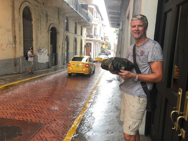 unser ziel ist die avenida balboa. die promenade am atlantik. wir parken gerade auf dem parkplatz neben einer marina ein, als es zu regnen beginnt. und wenn es hier regnet, dann auch gleich richtig. es gibt am parkplatz einen securitycontainer. auf dem kurzen weg dorthin sind wir komplett durchnässt. patschnass fragen wir die sicherheitsleute ob wir eine nacht bleiben dürfen. wir dürfen.
