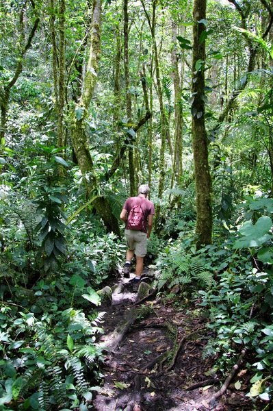 auch am nächsten tag machen wir eine wanderung. dieses mal fahren wir mit der josi zunächst ein stück, um dann den „sendero los quetzales“ zu fuß zu erkunden. einer der beliebtesten wanderwege panamas. der weg verläuft durch dichten, unberührten nebelwand mit einer besonders üppigen vogelweit. einen der fast schon sagenhaften „quetzales“ sehen wir leider nicht. der quetzal ist übrigens auch eines der wappentiere und auch namensgeber der aktuellen währung guatemalas. ein wirklich schöner weg, der teilweise extrem schmal und zugewuchert ist. wir überqueren diverse kleine und auch etwas größer bäche. teils über hängebrücken, teils von stein zu stein. abends erholen und versacken wir wieder in „unserer“ bar „the butcher“. wir werden schon fast wie stammgäste begrüßt. kurz darauf stellt uns der barkeeper william vor. william ist 86 und wie er selbst sagt ein lebemann. er erzählt uns von seinem bewegten leben und erkundigt sich sehr interessiert nach dem unsrigen. ein sehr sympathischer mann, mit dem man sich gerne unterhält. nach einer stunde muss er aber weiter. wir genießen noch einen weiteren sprizz, den man hier in zentralamerika doch recht selten bekommt.
